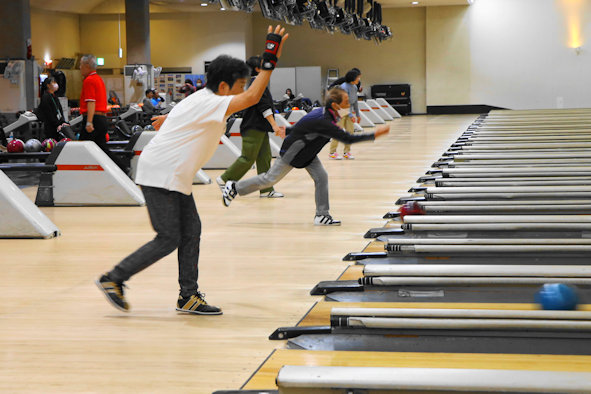 弾けるようなストライクやスペアが出る度にチームメンバー相互のハイタッチや大きな歓声